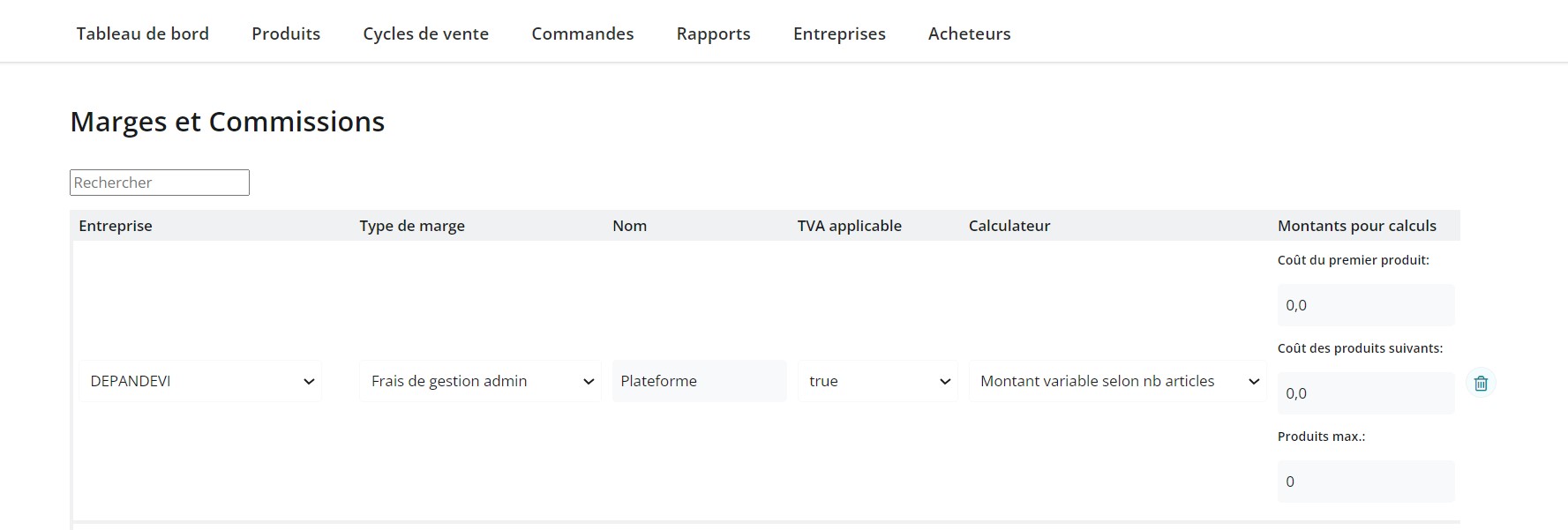 **Calculateur :** La marge peut être calculée de différentes manières. Sélectionnez [le calculateur](https://guide.openfoodnetwork.org/v/fr/basic-features/shopfront/enterprise-fees#le-calculateur) qui s'applique le mieux.