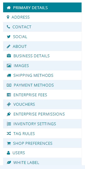 Enterprise settings are where you can manage details relating to your profile and/or shopfront.