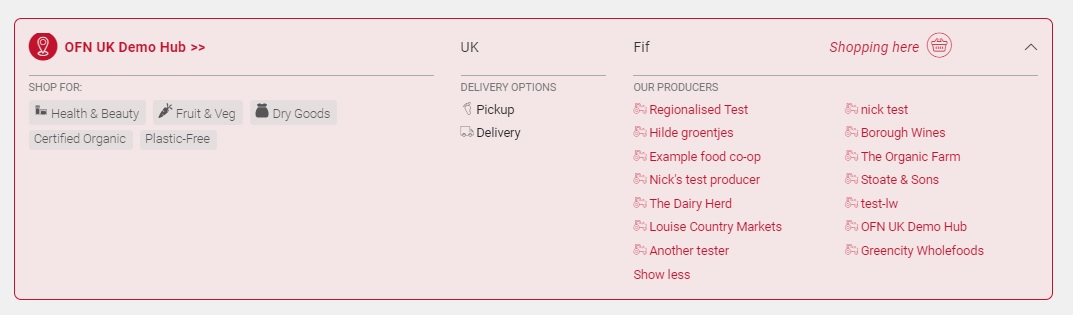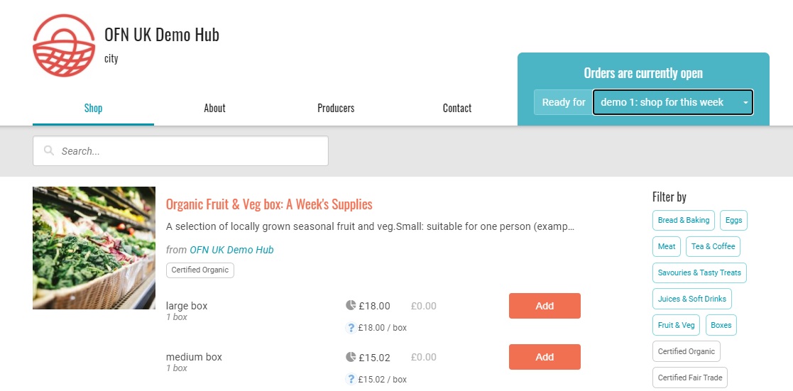 Shopfront Producer Ordering: As an alternative to organising the products listed in your shop front into those belonging to different categories, you can list items made by the same producer together.