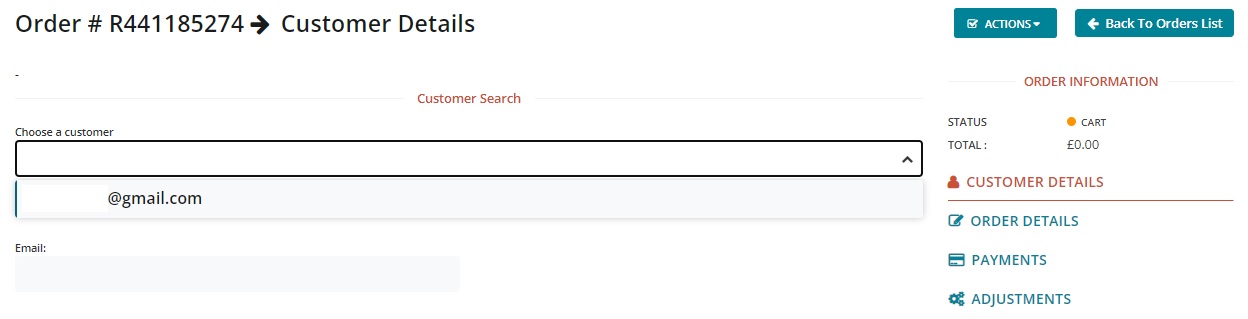 You'll then see the customer details screen where you can choose a customer from your customer list. Enter three or more characters in the 'choose a customer' drop down box and select your customer: