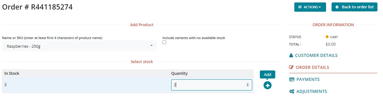Click 'Update' to save your progress, then go to 'Order details' from the menu on the right to start entering products: