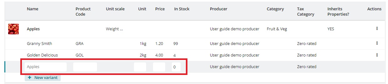 This will bring up a new variant row which can be edited for the specific properties of the item in question.&#x20;
