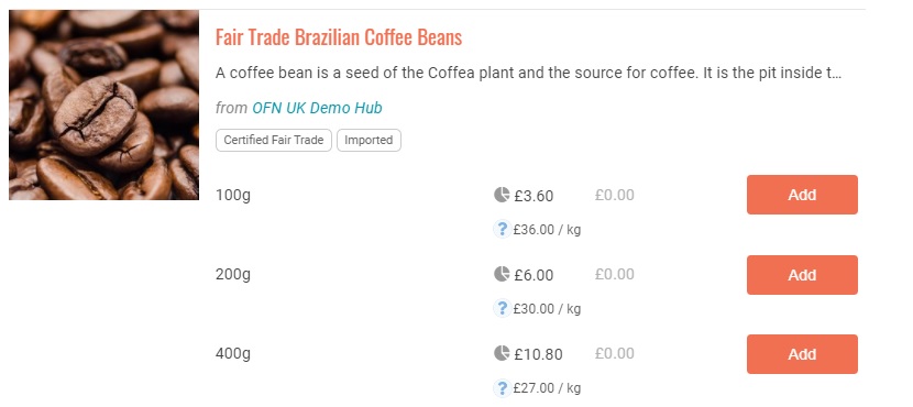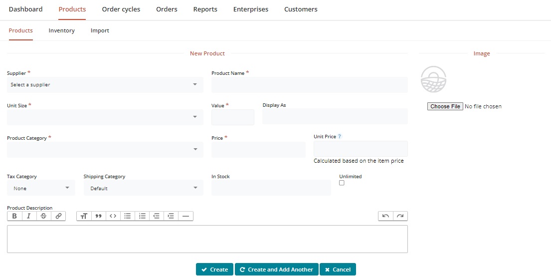 Price: Enter the price for the value noted above. Note that this is the base price charged by the producer and the amount they will receive for each purchase. Mark-ups and fees (for distribution admin etc) are added in Enterprise Fees, Shipping Fees and Payment Methods.