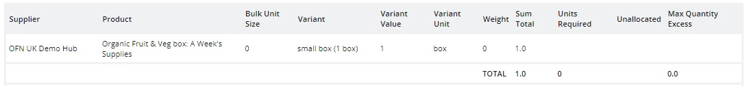 Products stocked by a hub which do not have bulk buy enabled will display with Bulk Unit = 0