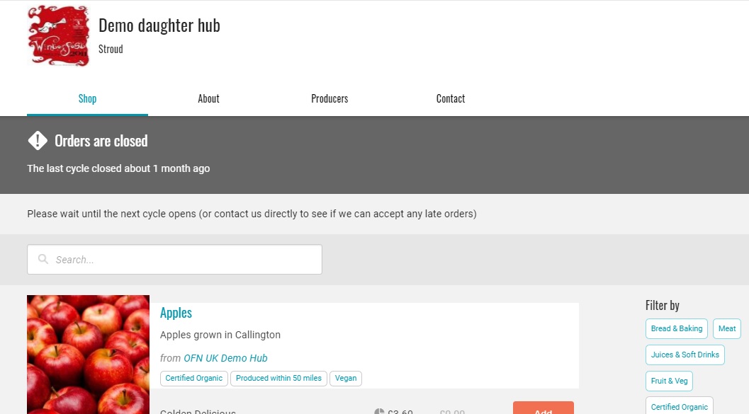 Your shop will now be in the ‘display only’ state. Below is an example of how the shop appears to customers. It’s clearly marked as closed, but customers can see the product range.