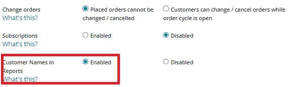 By default, 'customer names in reports' is disabled. Ensure you have this enabled for your producers if you would like them to receive reports grouped by customer to help them pack their orders.