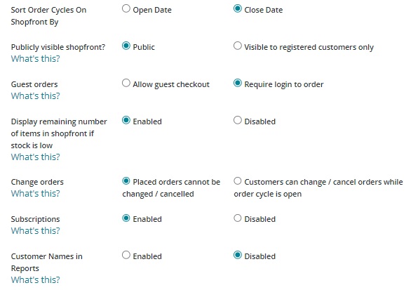 Start and End Dates for their subscription orders: Remember, for a subscription order to be created for a given order cycle it must have a start date either before or after the order cycle opening date, and the subscription end date must be after the order cycle close date.