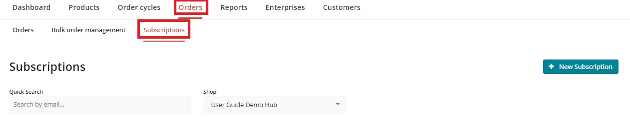 Click on Orders on the main horizontal menu and then select Subscriptions in the sub-menu.