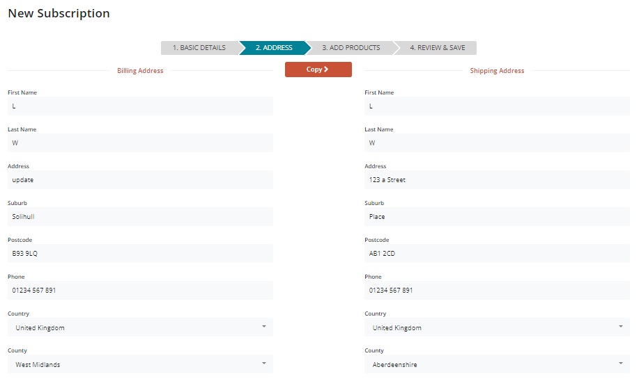 If you update the customer's address/contact details in the Customer page, the change won't automatically carry through to their subscription. You will need to update their details here too.