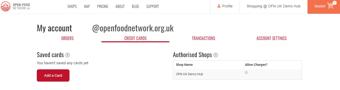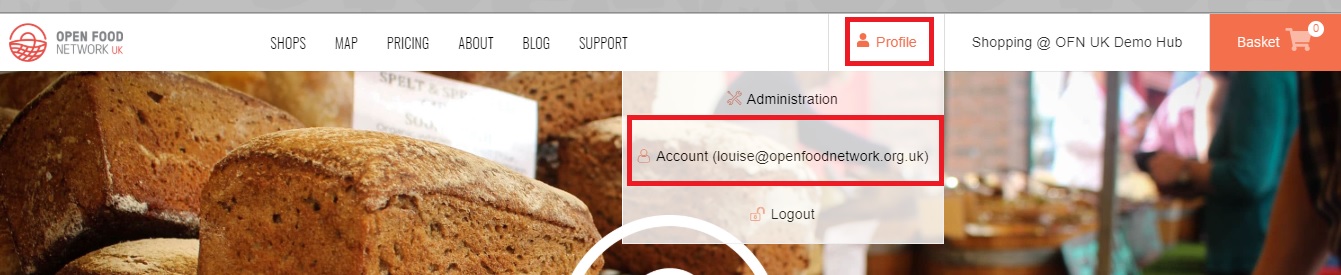 The Customer's Account page can be accessed after logging into OFN by the top right hand 'Profile' button: