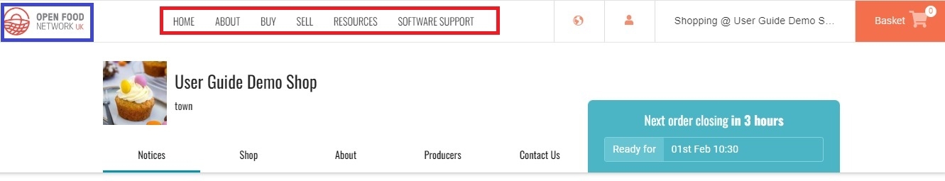Uploading a new image to replace the top right-hand OFN logo will also allow you to add a custom link to an external website. The OFN logo at the top of your shop front will, for most instances, link to their main OFN landing page. You may have a website which tells your food hub story etc. It would, therefore, perhaps be good to direct customers to this.