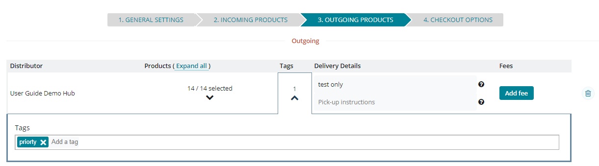 Visit Page 3 'Outgoing Products' and remove the tag. Remember to save your changes.