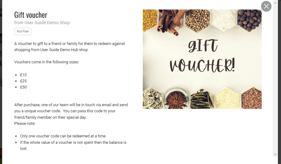 Create a product listing for vouchers. We suggest that you keep it simple ie. having a maximum of three different denominations of voucher only (£10, £25, £50).