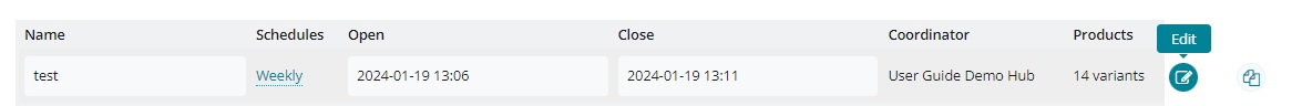 At this time visit your order cycles and select ‘Edit’ next to the one you wish to make ‘live’ to customers: