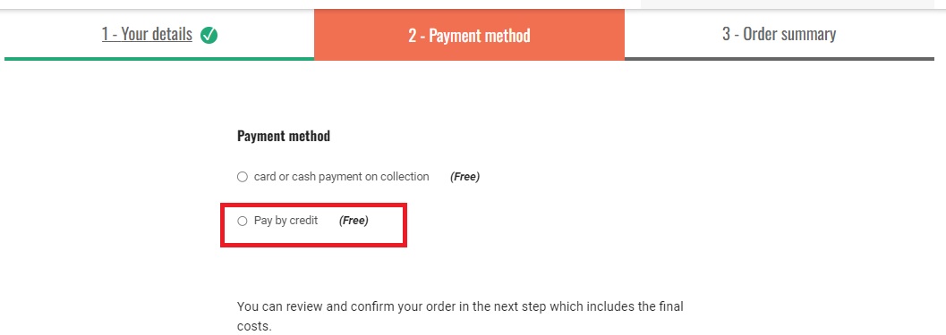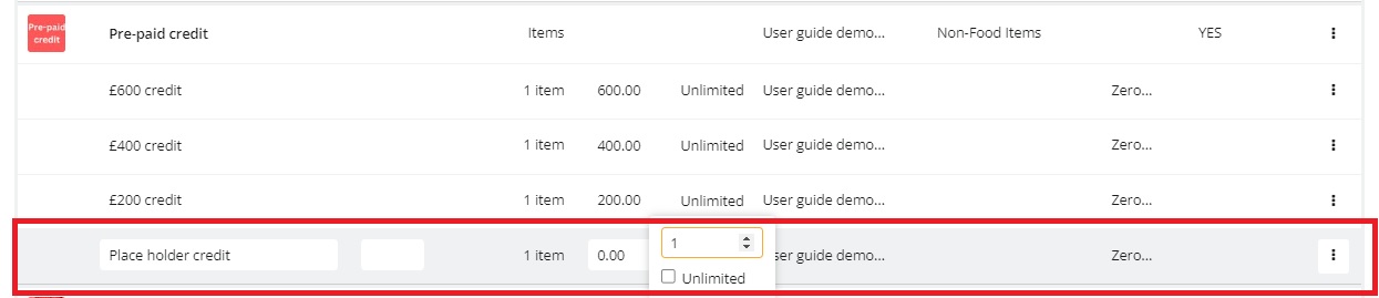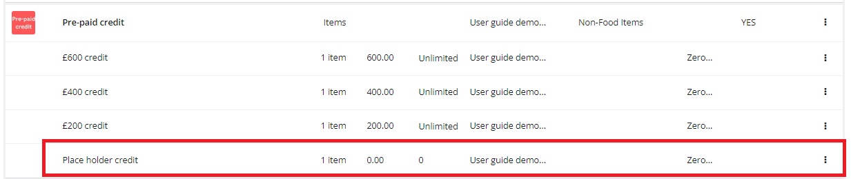 First you will need to add the ‘Place Holder credit’ to the order.