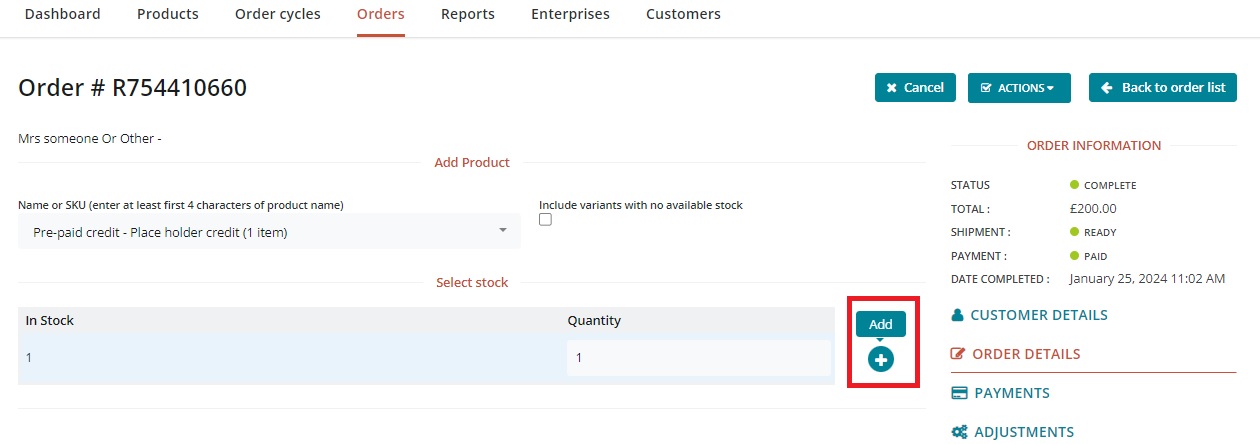 Now you can go back to your order list and choose to[ ‘edit’ the credit order](https://guide.openfoodnetwork.org/greek/basic-features/orders).