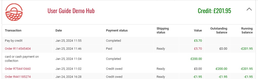 And if the customer logins to their account on OFN and goes to Transactions they will see a running balance of their account with you.