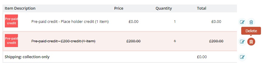To credit the payment on the 2nd order to the running balance of credit we must now go into that original credit order and make a negative payment in the amount of the 2nd order (i.e. - £5.70).