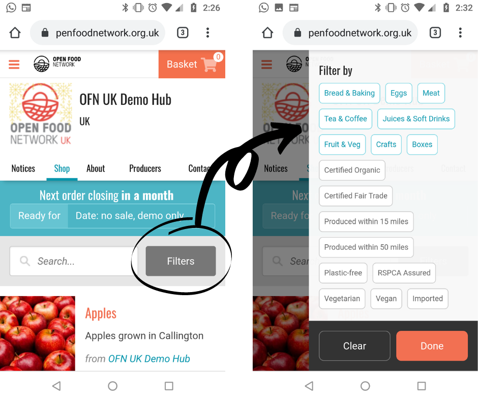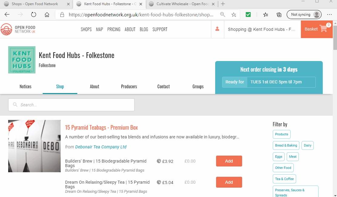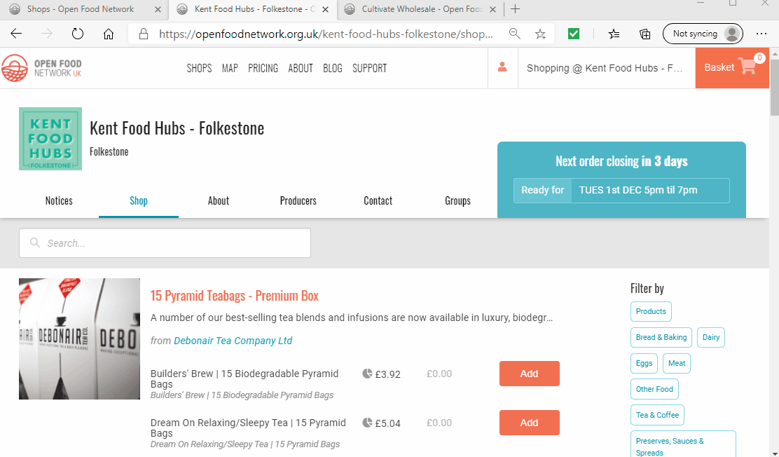 You can search for items by their product name and the producer’s name (in case you know Mrs B makes amazing cakes and you want to see her whole range!). The search box is found on the left of the screen under the menu tabs.