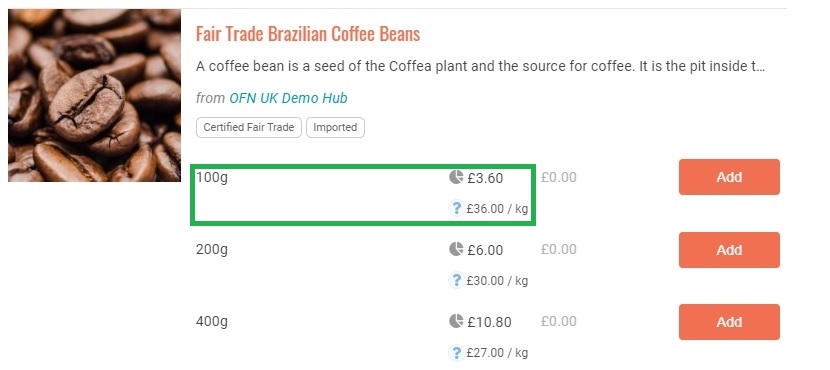 Hence, when viewing a shop you can click on a product name to find out more about the item. Information such as ingredients, allergens, how it was made and more will appear in a pop out window.
