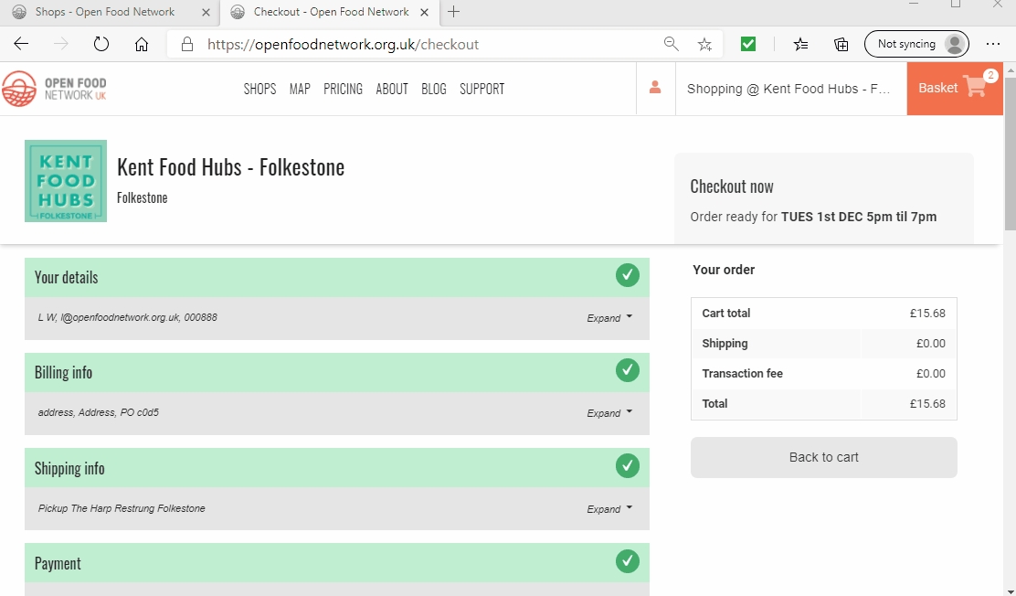 Address details will be automatically completed if you have an OFN account and have made a purchase in the past. You can edit any details by clicking on ‘Expand’ to the right of the menu: